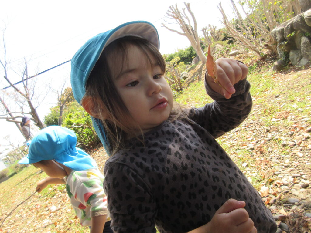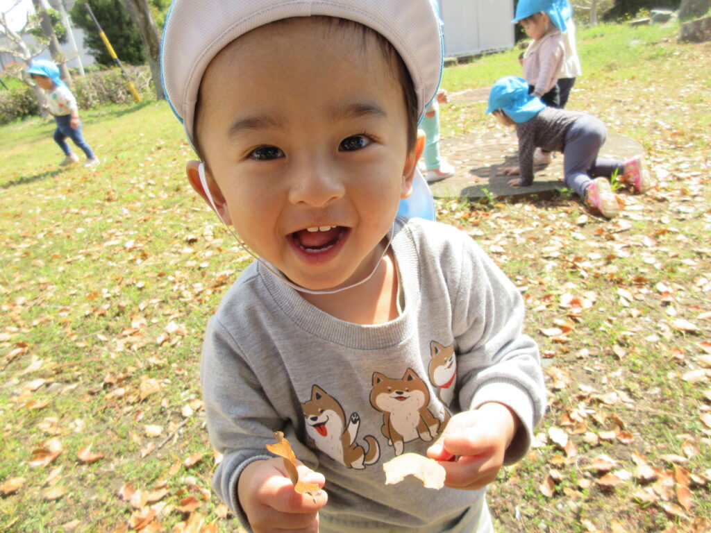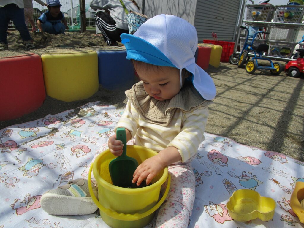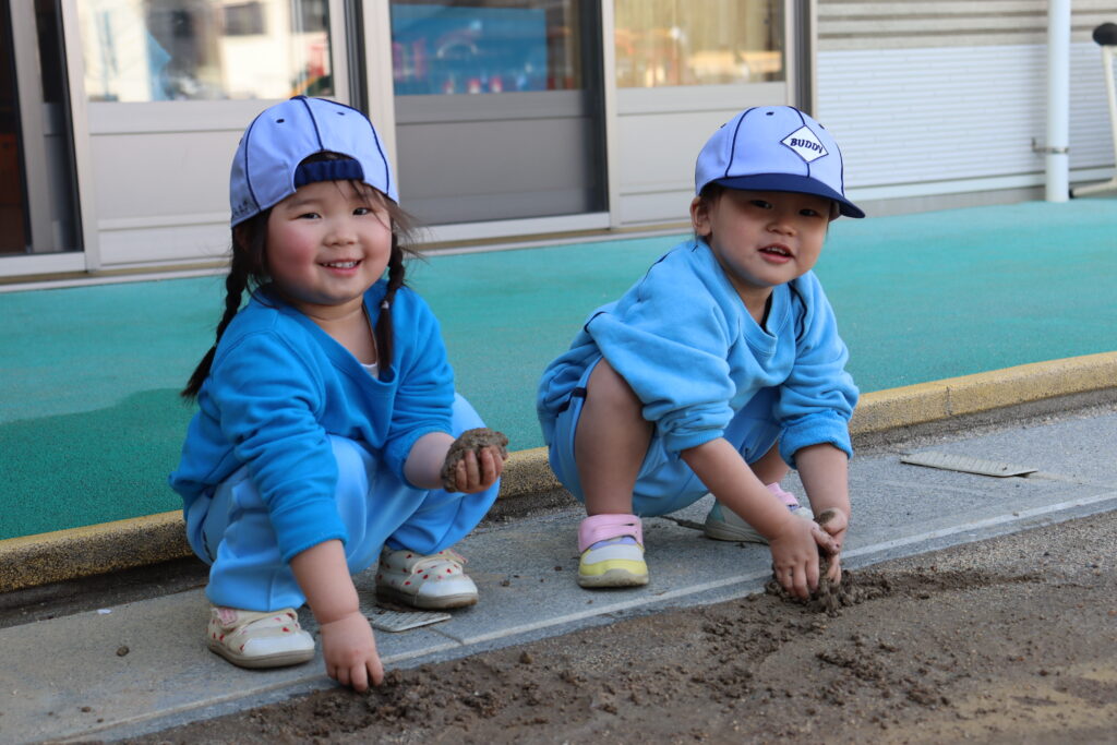 お外って気持ちがいいね♡ 2025年4月9日2026年2月2日 天気の良い日には、小さいクラスのお友だちもお外で元気いっぱい遊んでいます! 雨上がりに小さな水たまりをみつけ、どろんこ遊びを始めた2歳児さん… 近くの神社で葉っぱをみつけたよ!1歳児さん! 4月から新しく入った0歳児のお友だちも、お砂遊びにチャレンジ! URL Copied!