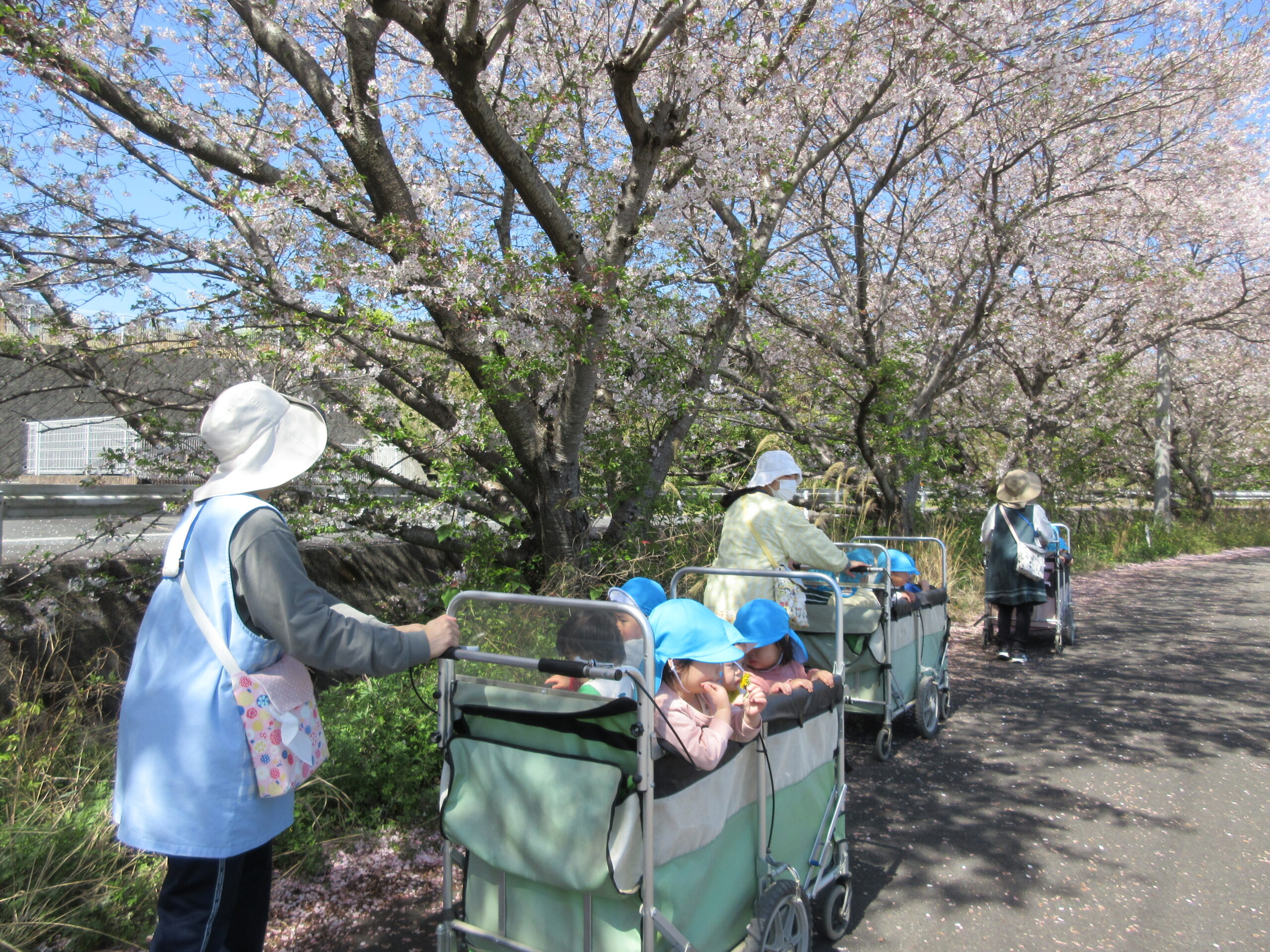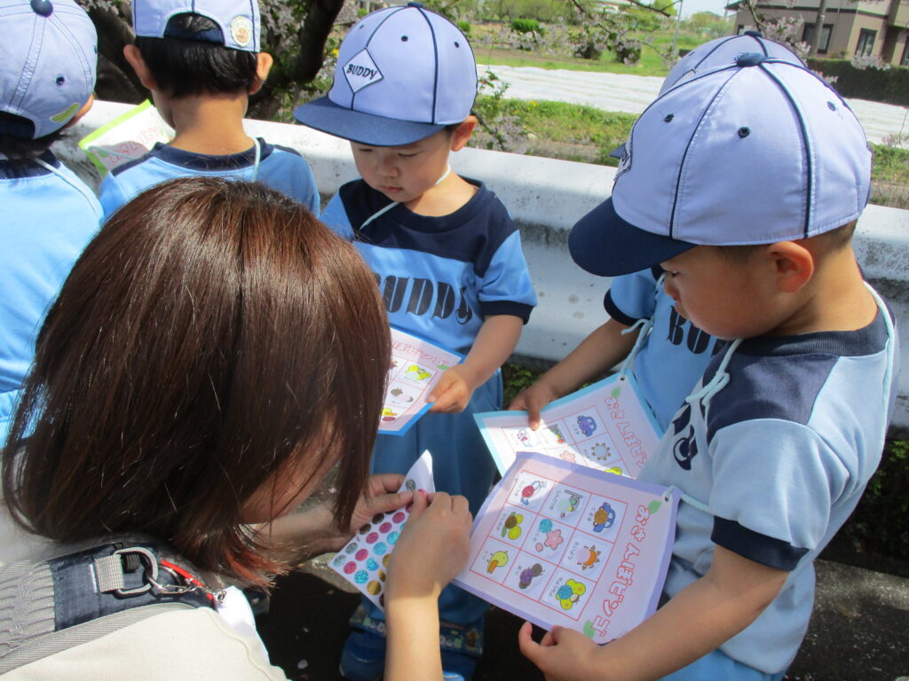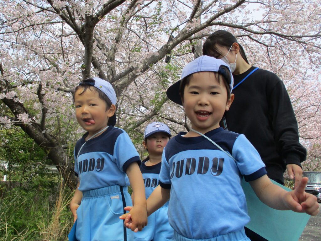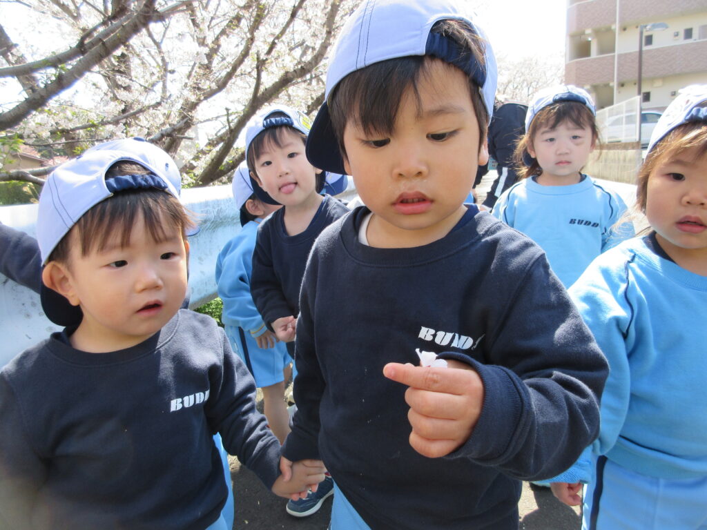 お花見散歩 2026年4月20日 今年も桜がきれいに咲きましたね♡お花見散歩に行ってきました! ひらひら~と舞い降りて来る花びらに、手をのばしていた子どもたちです。 3歳児さんはお散歩カードを持って、春探しを楽しんできました。 1・2歳児さんもきれいなお花を手にとり、春を感じることができました♪ URL Copied!