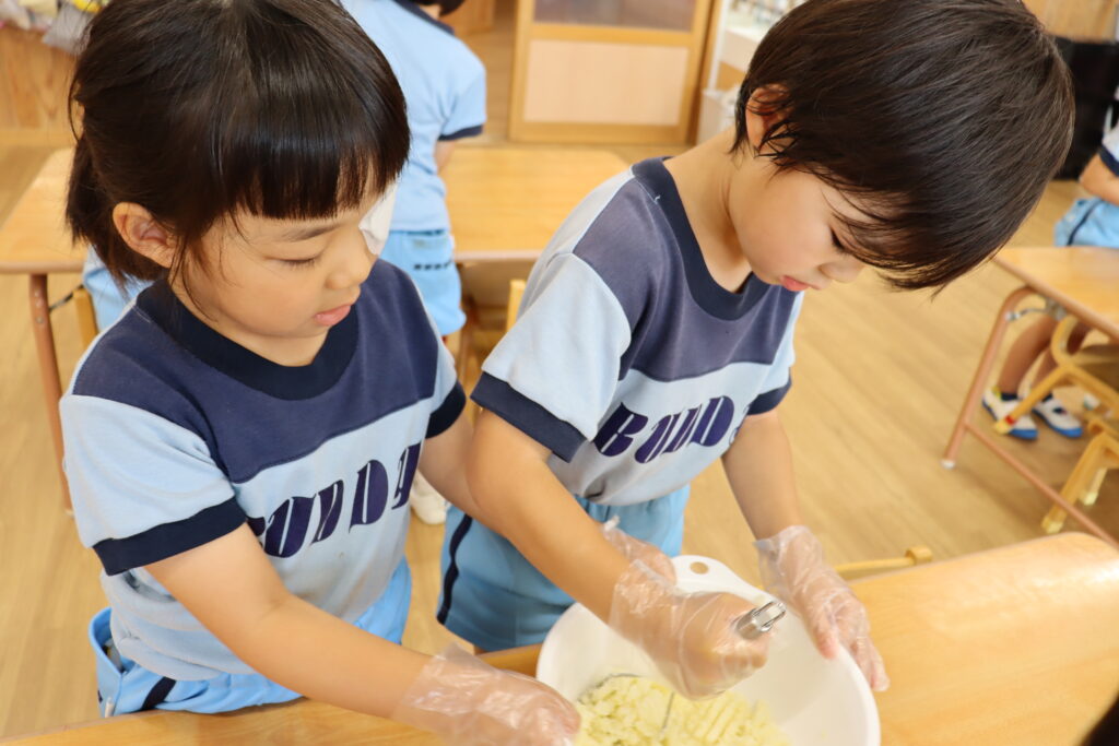 年中児がバディ農園で収穫したじゃがいもを使ったクッキングを行いました。