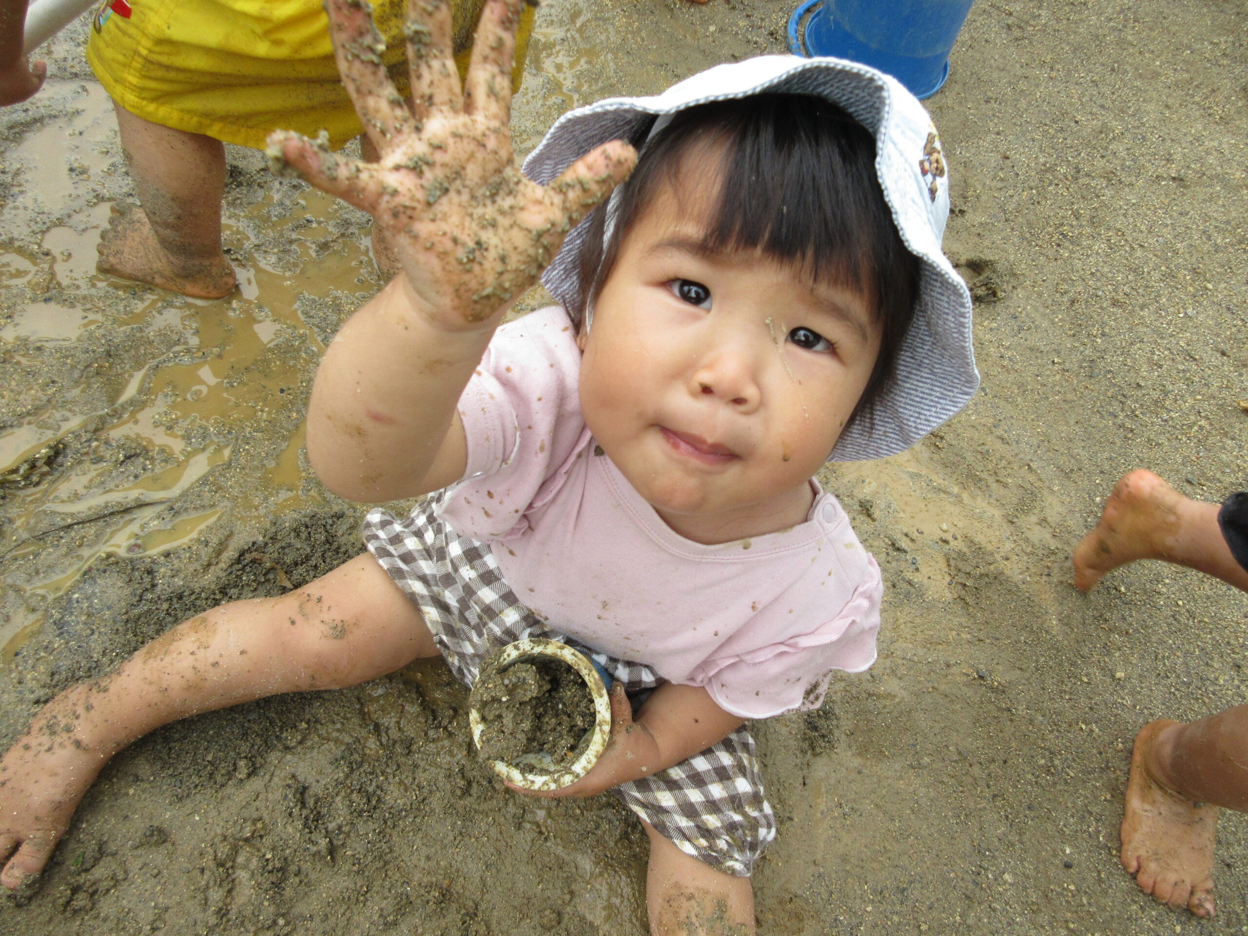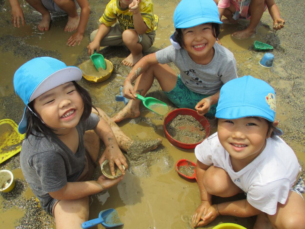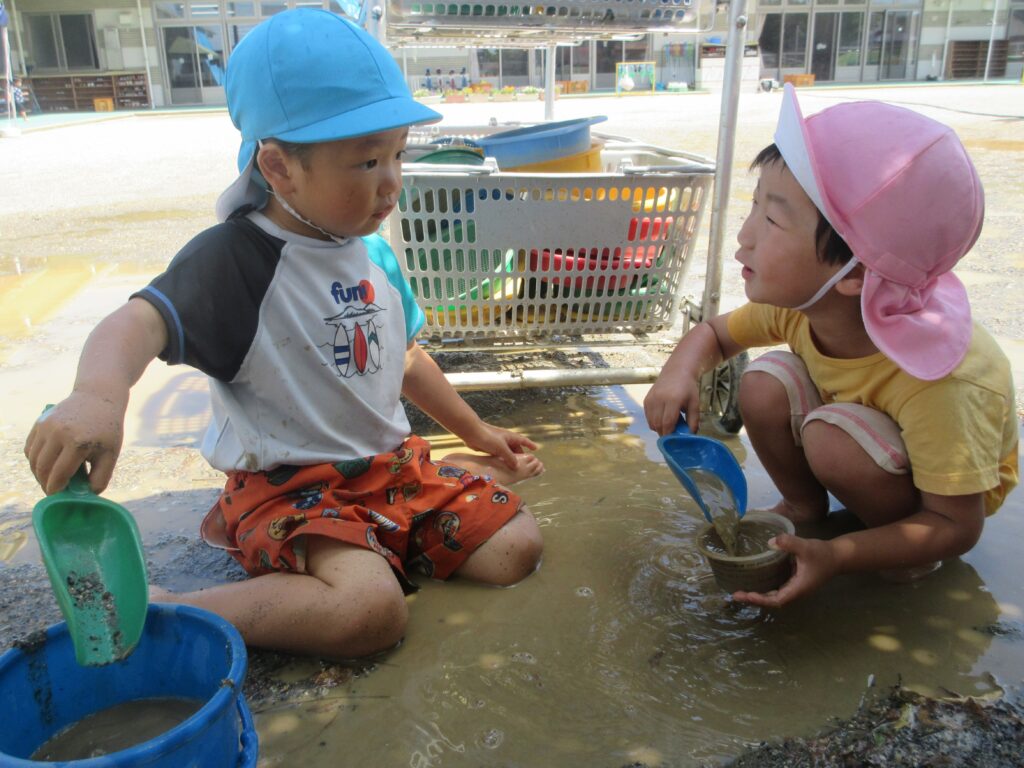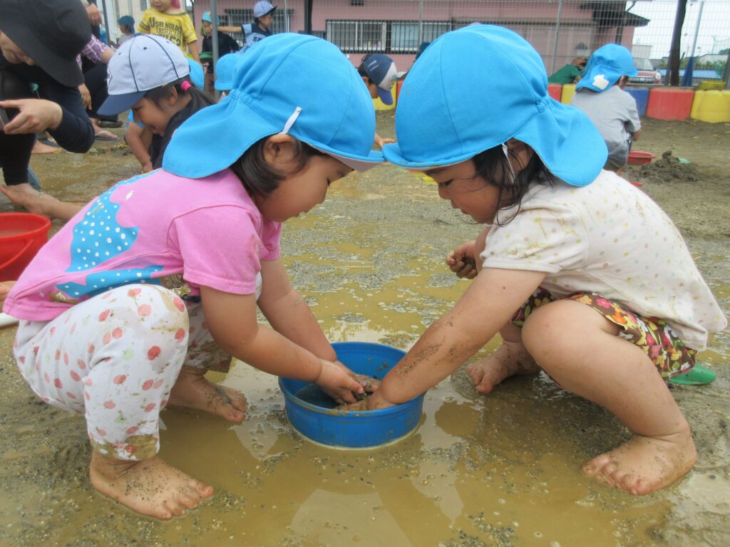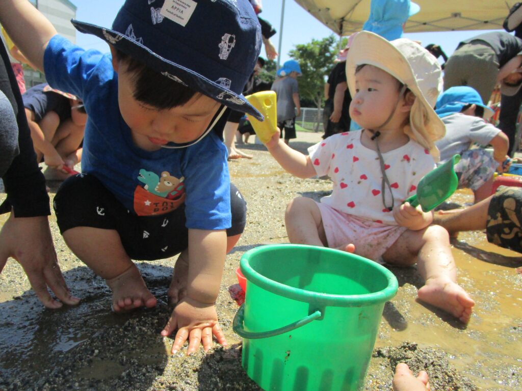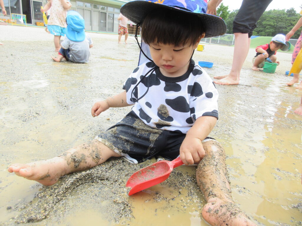 どろんこあそび♡楽しいね 2025年6月24日2026年2月2日 6月といえば…どろんこあそび! 暑くてじめじめするこの季節…お水や泥んこの感触を楽しんでいます。 0・1歳児さんは初めての感触に少しドキドキ♡ 2・3歳児さんも、仲良しのお友だちと楽しんでいます♪ 4・5歳児さんはみんなで相談!協力! 子どもたちの様々な表情が見られる楽しい時間です♡ URL Copied!
