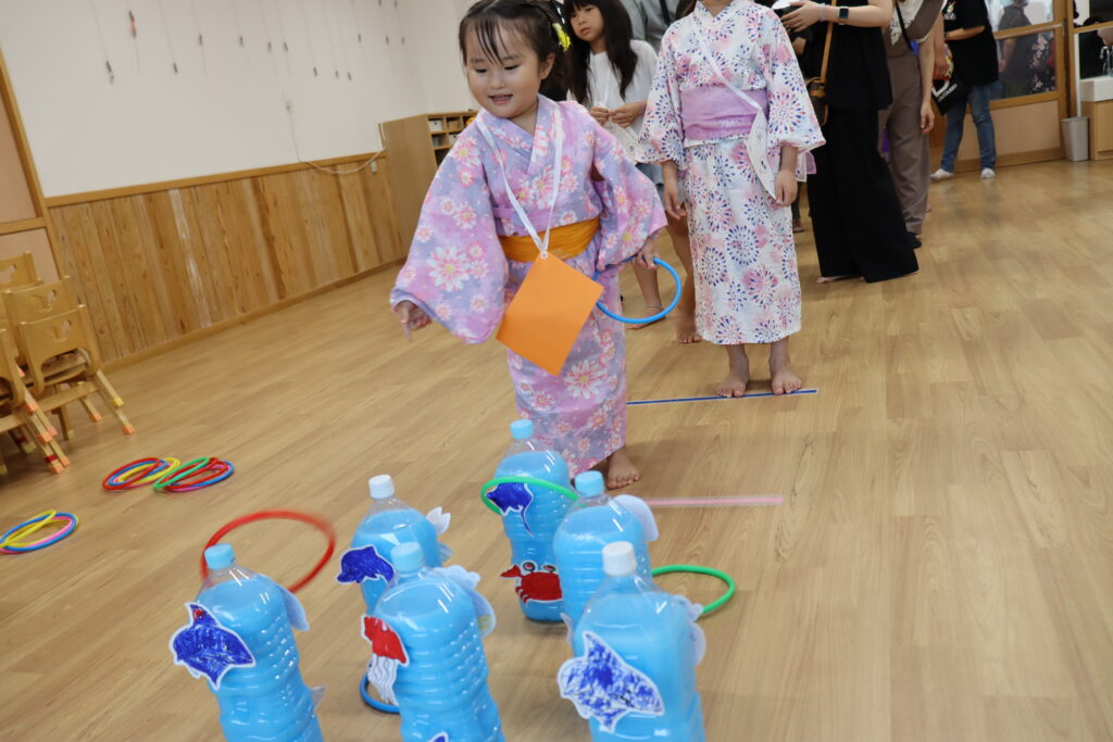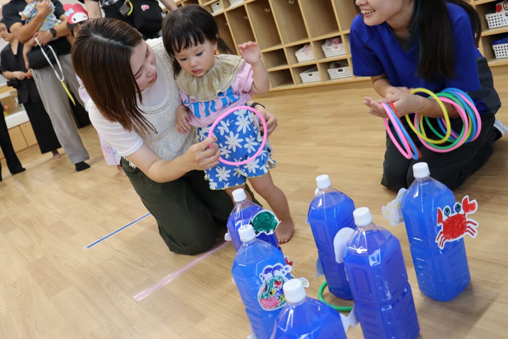的をめがけて「えいっ!」と輪っかを投げる姿がかわいらしかったです♡