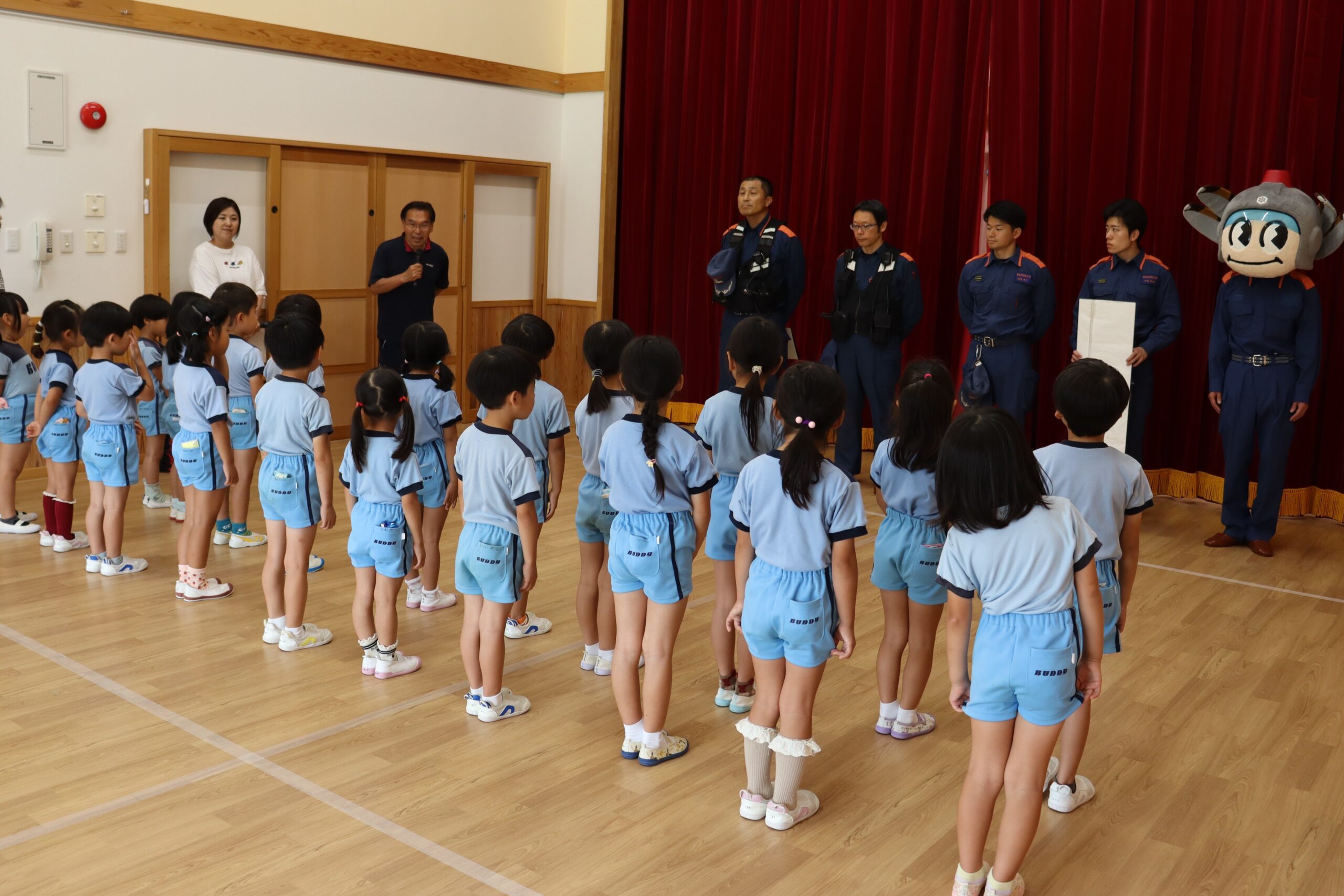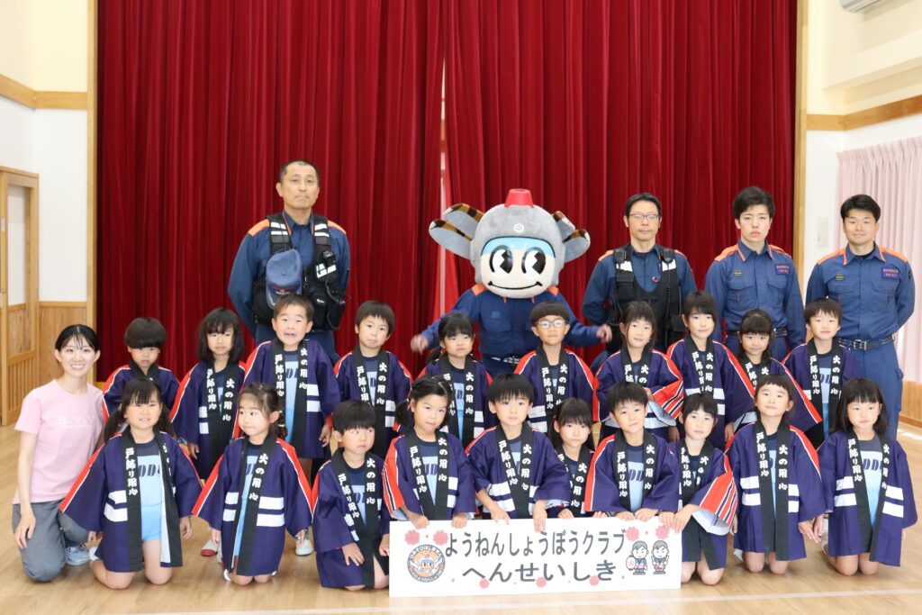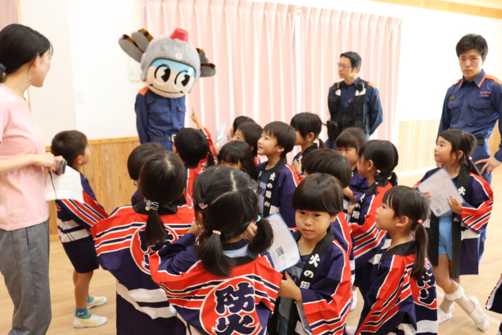幼年消防クラブ編成式が行われました 2025年5月22日2026年2月2日 本日、年長児対象の幼年消防クラブ編成式が行われました。 何が始まるかな?とドキドキ♡わくわく♡の子どもたち! 「火遊びは絶対にしません!火の用心!」と消防署の方と約束を交わしました。 べっくんにも会えて嬉しそうな子どもたちでした♪ 今後も、煙体験や起震車体験等を通して防災について学ぶ機会をつくっていきます。 URL Copied!